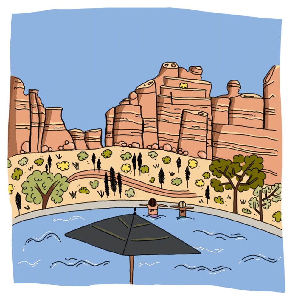 For my birthday, I went to Sedona with my girlfriends. Sedona’s landscape is like a little snack of weirdness. The red mountains, the desert surrounding, the vegetation, it almost feels like an alien planet. Just look at the color palette pulled right from the photo.